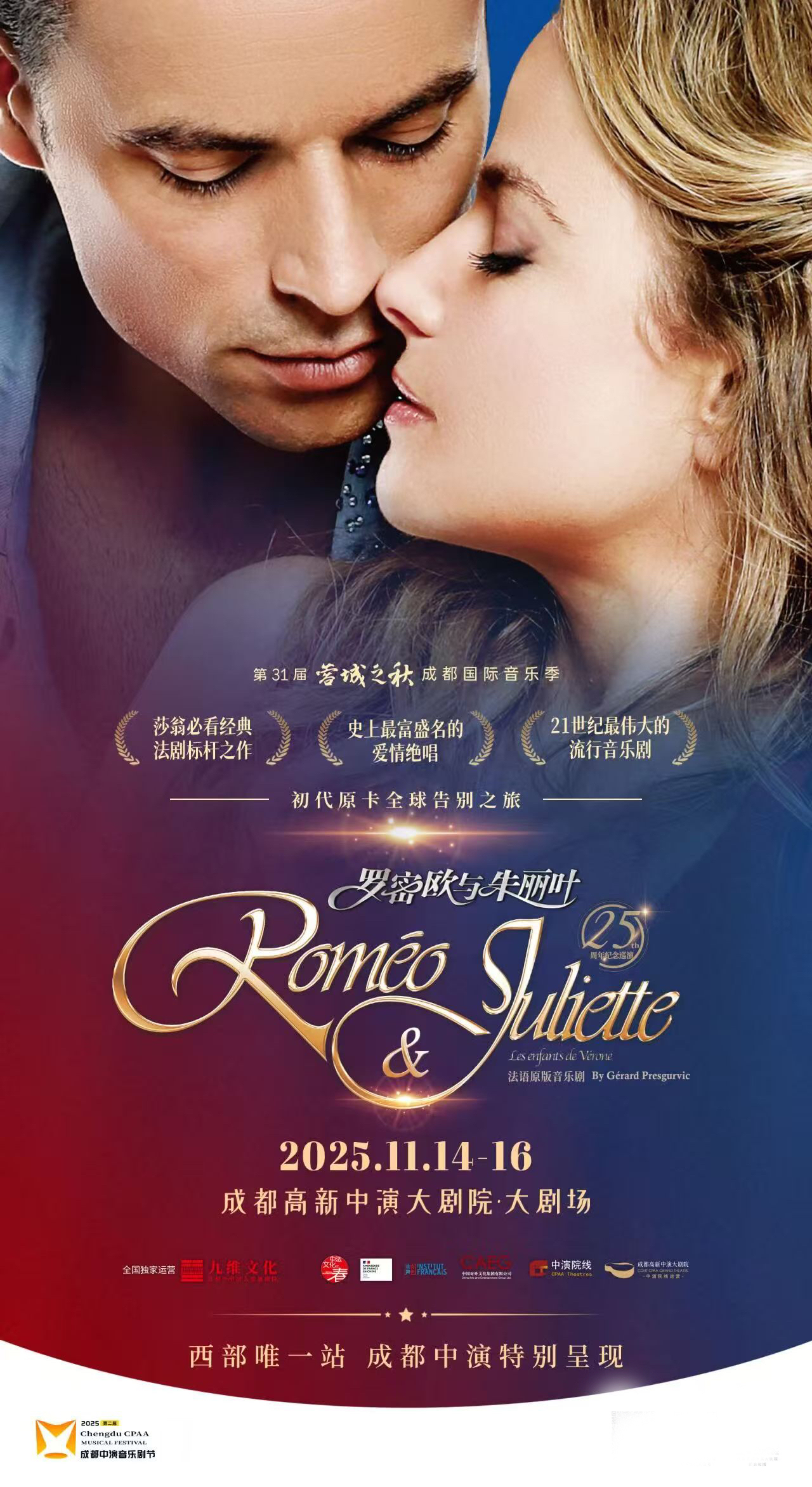 此次成都站不仅是2025成都中演音乐剧节的核心亮点万隆优配,更带来专属惊喜——全球首演初代原卡达米安・萨格与希西莉亚・卡拉将携手登台,用原汁原味的法式演绎完成告别之旅。成都高新中演大剧院总经理郝鑫表示:“法语原版音乐剧《罗密欧与朱丽叶》本轮国内巡演仅有少数几站,我们为大家争取到了西南地区的唯一一站,希望不止成都观众能够来看,也希望周边省份的音乐剧爱好者来成都追剧旅行,感受天府之国的巴适生活。
